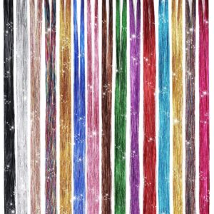 بريق شعر مستعار القوس القزحي ملون خيوط فتاة أغطية رأس شعر ليزر مزيف وصلة شعر مبالغ فيه زخارف لامع حفلة – Size: 24 inch