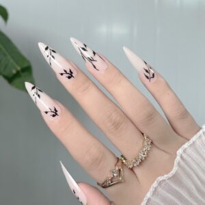 رفع لك أسلوب مع 24 قطعة طويل خنجر لون بشرة نمط اوراق الشجر أظافر اصطناعية ملف الأظافر 1قطعة & ورقة واحدة شريط – Size: