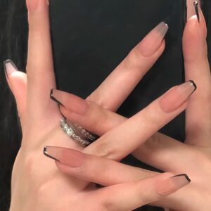 رفع لك أسلوب مع 24 قطعة قصير نعش أسود فرنسي لونين أظافر اصطناعية ملف الأظافر 1قطعة & ورقة واحدة شريط فرنسي يضعط الأظافر – Size:
