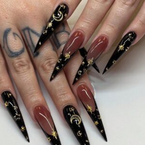 رفع لك أسلوب مع 24 قطعة طويل خنجر نمط قمر تغطية كاملة أظافر اصطناعية طقم – Size: