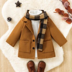 رضيع الأولاد الخريف و الشتاء بريبي بني معطف مع كلاسيك مربعات ملونة 2حزمة وشاح طقم – Size: 9-12M