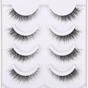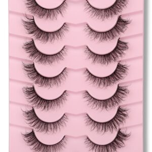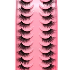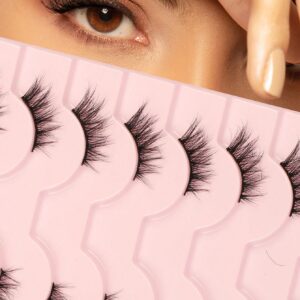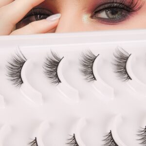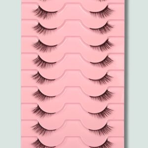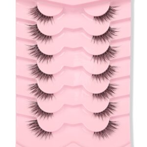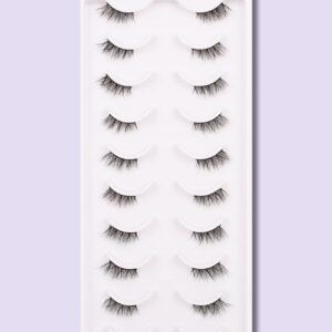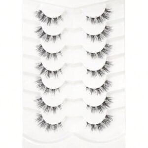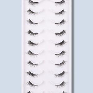 رموش نصفية 7 أزواج بطول 10 مم بمظهر عين القطة وذيل طويل، رموش كاذبة خط الفراء الاصطناعي – Size: