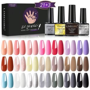 عدة طلاء أظافر لامع شبه دائم 24 قطعة، مجموعة طلاء أظافر جل 21 لونًا تحتوي على طلاء قاعدة وطبقة سطحية، طلاء أظافر جل زاهية الألوان، طلاء أظافر جيل لامع يزول بعد التنظيف بالمذيبات، احترافي لصالون الأظافر هدية للنساء – Size: