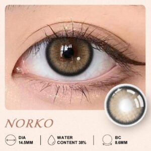 عدسات لاصقة ملونة من مستحضرات التجميل لالينس نوركو براون، عبوة من 2، مع جل مائي ومواد غير أيونية، قطر 14.5 ملم، منحنى قاعدة 8.6 ملم، محتوى رطوبة 38%، حافة قفل بقطر كبير لتكبير العيون ناعمة ومريحة، حماية طبيعية من الأشعة فوق البنفسجية مضاد للضوء الأزرق، يستخدم لمدة عام، مناسب للتنقل والارتداء اليومي – Size: Yearly Disposable