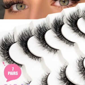 ظلال العيون المزيفة بأزواج 7 أزواج، رموش كات آي بمزيج من خيوط المنك التي تعطي مظهرا طبيعيا واقعيا للعين بصفة عامة، مع تموجة في الجناح الخارجي مع إطراف غير منتظمة وطويلة، وهي رموش مزيفة كثيفة وناعمة. – Size: