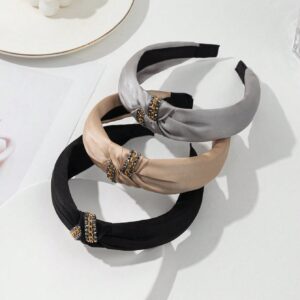 عدد 3 مجموعة/مجموعة حصرية للنساء نطاق رأس واسع بلون موحد مزين بالراينستون للاستخدام اليومي والملحقات الشعرية – Size: one-size