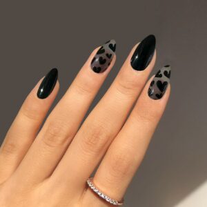 في الحال يرقي مظهرك مع , 24 قطعة طويل لوز أسود & تصميم قلب أظافر اصطناعية عدة , للنساء & بنات – Size: