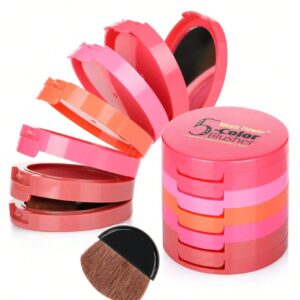 قطعة واحدة 5ألوان احمر الخدود مسحوق عدة مع قطعة واحدة فرشاة مكياج مكياج – Size: