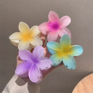 قباضة شعر بيضة أصفر زهرة أرجواني أزرق وردي تصميم بوهو الى الحياة اليومية 4 قطع نساء – Size: one-size
