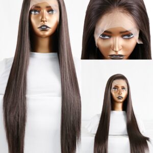 قطعة شعر اصطناعي بطول 24بوصة وغطاء ليس مؤمناً بنمط متحرر من الدانتيل للإرتداء اليومي ، اللون: 4# المستقيمة – Size: 24 inch