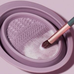 قطعة واحدة سيليكون قابلة للطي منظف فرش المكياج , أدوات مكياج الى نفخة مسحوق , أداة تجميل الخلاط , فرشاة غسيل زبدية , بنفسجي وردي – Size: