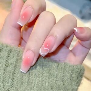 قم بترقية مظهرك مع 24 قطعة من أطراف الأظافر الطويلة ذات اللون الوردي المتدرج ذات الشكل البيضاوي للرغبة النقية، وألوان ثابتة وتجعل الأيدي تبدو بيضاء، ونمط أوروبي وأمريكي. تتضمن قطعة واحدة من ملمع الأظافر وقطعة واحدة من غراء الجيلي. – Size: