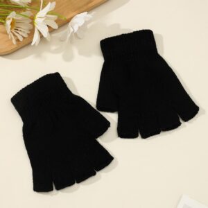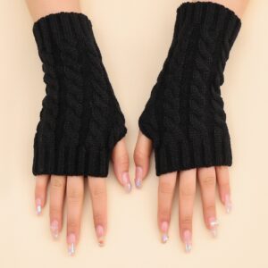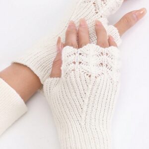 قفازات نصف أصابع محبوكة من الدانتيل للدفء، مناسبة للطلاب – Size: