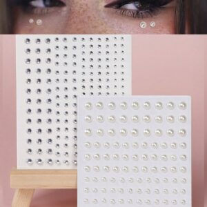 قطعتان من ملصقات الوجه ثلاثية الأبعاد من اللؤلؤ الصناعي والأحجار الكريمة متعددة الألوان للديكور بنفسك، ومهرجان الموسيقى، ومكياج Y2k والحفلات – Size: