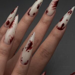قم بترقية مظهرك مع مجموعة أظافر وهمية ذات غطاء كامل من 24 قطعة بطباعة تجريدية طويلة خنجر – Size: