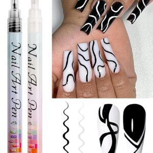 قطعتان من أقلام الكتابة على الجدران المقاومة للماء باللونين الأبيض والأسود، أقلام رسم تجريدية لرسم الأظافر وتفاصيل دقيقة وتصميم زهور وأقلام أدوات تزيين الأظافر – Size: