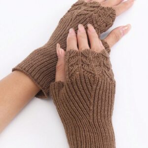 قفازات صوف نسائية قصيرة بدون أصابع لتدفئة الذراعين، الشتاء، بتصميم قشر السمك، اللون كاكي – Size: one-size