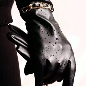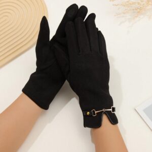 قفازات نسائية من دهن الغزال الدافئ والعصرية، بتصميم سلسلة معدنية أنيقة ومناسبة لمختلف المناسبات ووظيفة اللمس على الشاشة. مناسبة للخريف والشتاء والارتداء اليومي للنساء الناضجات. – Size: one-size