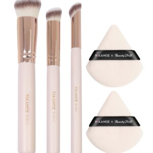 مجموعة 3 فرش مكياج + 2 قطعة وسادة هوائية مثلثة تستخدم للجاف، أدوات تجميل بما في ذلك فرشاة كريم الأساس، فرشاة خافي العيوب، فرشاة ظلال العيون – Size: