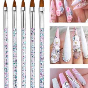 مجموعة 5 فرشاة لتجميل الأظافر ، رسم الأزهار و التمديد الاكريليك ثلاثية الأبعاد ، فرشاة للجل اوفرلاي ،فرشاة إبداعية لأعمال فنية فن الأظافر – Size:
