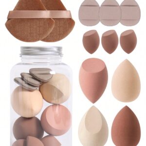 مجموعة إسفنجة مكياج مكونة من 12 قطعة/المجموعة تتضمن قطعتين من اسفنجة البودرة المثلثة، و4 قطع من بيوتي بلندر، و3 قطع من بيوتي بلندر المصغرة، و3 قطع منتفخة وسادة هوائية للأصابع. مصنوعة من المخمل فائق النعومة، مصممة خصيصًا لتشكيل منطقة العين والزوايا ووعاء مزج مستحضرات التجميل. تحتوي المجموعة على وسادة هوائية منفوخة، وإسفنجة مختلطة خالية من اللاتكس، وإسفنجة مكياج، مناسبة لكريم الأساس السائل وكريم الأساس والكونسيلر. يمكن لإسفنجة التجميل التي تمزج كريم الأساس أن تعمل بشكل جيد مع السائل والكريم والبودرة، مجموعة إسفنجة مكياج متعددة الألوان، خالية من اللاتكس، ومناسبة لجميع أنواع البشرة. الجمعة السوداء – Size: