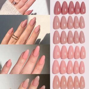 مجموعة أظافر اصطناعية بمظهر طبيعي تصميم ألوان صلبة ولامعة باللون الوردي الدافئ (96 قطعة) من الحجم المتوسط، بأشكال أظافر لوزية تحتوي على علبة تخزين واحدة، هدية للنساء والفتيات بالإضافة الى شريط ورق لاصق ومبرد أظافر واحد. – Size: