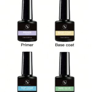 مجموعة 4زجاجات من جل قاعدة الأظافر، وطلاء الدعامة، والطبقة الأولى، واللاصق للأظافر بحجم 7.5مل من الراتنج Abs، تمنح تصاق قوي، وحماية الأظافر، وتحمل مدد زمنية، وتأثير جفاف لا رائحة له. مناسبة لمحلات الأظافر الشخصية وهدية لهواة الأظافر للنساء. – Size:
