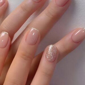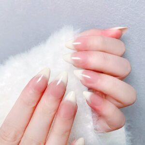 مجموعة أظافر اصطناعية 24قطعة بشكل لوزي وردي عاري مائل للأبيض،مع ملف أظافر وجيلي جيل 1+1 – Size: