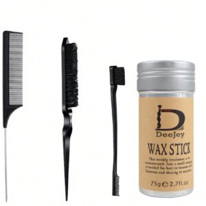 مجموعة أدوات تصفيف الشعر 4 قطع (مشط تصفيف الشعر، عصا شمع الشعر، فرشاة تصفيف الشعر، مشط الذيل الفأر، فرشاة حافة ذات جانبين)، أداة تصفيف الشعر للشعر والشعر الطبيعي – Size: one-size
