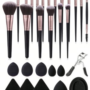 مجموعة أدوات المكياج تحتوي على 18 فرشاة مكياج و فرشاة تنظيف +6 قطع اسفنج مكياج+ 3 قطع من اسفنج الميك اب + 1 مدر Curler – Size: