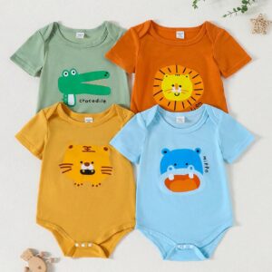 مجموعة بذلات من قطع متعددة لرضيع الولد بطبعات كرتون حيوانات متعددة الألوان – Size: 18-24M