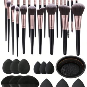 مجموعة أدوات المكياج + 25 قطعة من فرش المكياج + قطعة واحدة من فرشاة التنظيف + 6 قطع منتفخة للمكياج + 6 قطع من إسفنجة المكياج – Size: