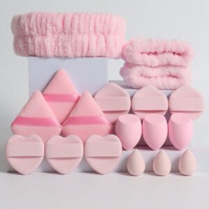 مجموعة أدوات ماكياج 18قطعة: شريط رأس 1قطعة ومعصمان 2قطعة وإسفنجة ماكياج 3قطع وإسفنجة ماكياج صغيرة 3قطع وفرشاة مثلثة الشكل 3قطع وفرشاة لامعة هوائية 6قطع. إسفنجة الجمال لخلط الأساس ، لتطبيق خالٍ من العيوب لمستحضرات السوائل والكريمات والمساحيق. إسفنجات المكياج متعددة الألوان، لامعة لخلط البرايمر والأساس بالمساحيق والكريمات، مناسبة لجميع أنواع البشرة – Size: