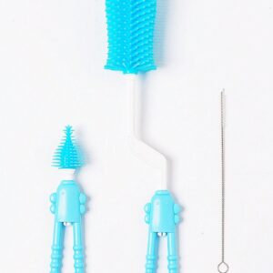 مجموعة 3 قطع لتنظيف زجاجة الأطفال بفرشاة سيليكون للقش ، مناسبة لتنظيف الزجاجات والحلمات والأكواب والقش – Size: one-size