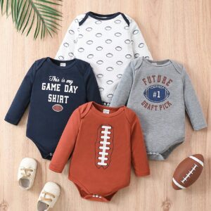 مجموعة أجسام طفل صبي مطبوعة بطبعة البيسبول 4قطع – Size: 18-24M