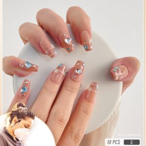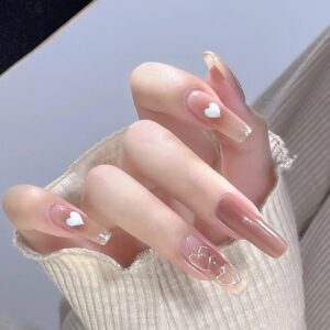 يرقي لك مع 10 قطع قصير نعش ثلاثي الأبعاد زخرفة قلب تغطية كاملة أظافر اصطناعية عدة – Size: