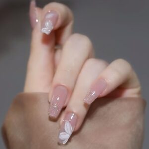 يرقي لك مع 24 قطعة طويل نعش بطباعة الفراشة تغطية كاملة أظافر اصطناعية عدة – Size: