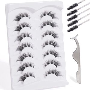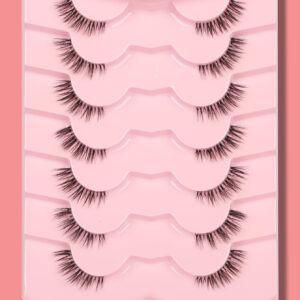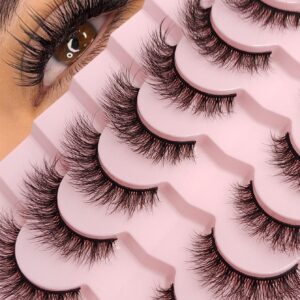 7 أزواج من الرموش الصناعية بنصف عين، رموش عين القطة الطبيعية من فرو المنك الصناعي، رموش طويلة وقصيرة – Size: