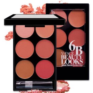 6 ألوان مادة احمر الخدود لوحة مكياج مع فرشاة – Size: