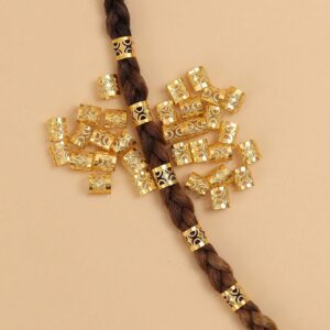 50قطعة خرز شعر ذهبية للضفائر، خطافات قابلة للتعديل، خواتم صغيرة، مشبك للخرز لتمديد الشعر، عروق للشعر للبيع – Size: