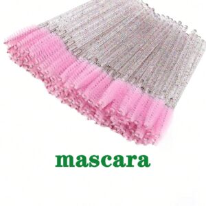 50قطع/حزمة وردي استخدام مرة واحدة كريستال فرشاة رموش , حلزوني ماسكارا فرشاة , فرشاة حواجب , للسوط مشط , أدوات المكياج الى تمديد رمش أسود جمعة – Size: one-size