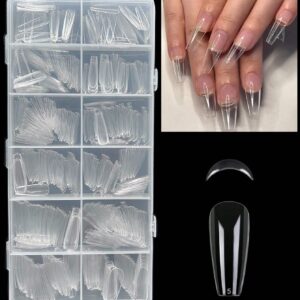 600 قطعة/صندوق نظام تمديد أظافر جل بغطاء كامل منحوت وشفاف طويل أطراف أظافر صناعية – Size: