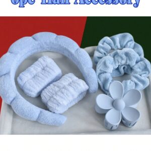 6 قطع من عصابة الرأس الأنيقة المبطنة ذات الشكل المموج الأزرق، مشبك شعر على شكل زهرة سكرانشي من القطيفة – Size: one-size