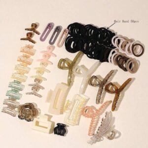 80 قطعة من طقم اكسسوارات الشعر ، و يتضمن مشبك الشعر بشكل فم القرش ، حامل الكعكة ودبوس الشعر للشعر المنسدل المزدوج ، طقم مشابك الشعر العصرية للنساء ذوات الشعر الكثيف/الرقيق ، مطاطية غير تالفة لشعر الرأس – Size: one-size