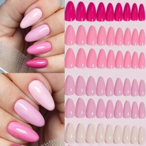 96 قطعة من سلسلة الألوان الوردية المتدرجة، هدايا الضغط على الأظافر لعيد الحب، غطاء كامل طويل من اللوز، أظافر صناعية، ضغط طبيعي على الأظافر للنساء والفتيات مع مجموعة أظافر صناعية بلون سادة وشريط واحد وملف أظافر واحد – Size: