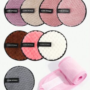 8حبات من المسحوق لإزالة المكياج مع حبة ربطة شعر، إسفنج لإزالة المكياج لطيف وصديق للبشرة مناسب للوجه ، خفيف وسهل الحمل في السفر – Size: