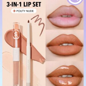 SHEGLAM Soft 90’s Glam طقم محدد شفاه وأحمر شفاه – طقم شفاه Pouty Nude Lip Set – Size: one-size