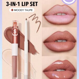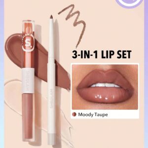 SHEGLAM طقم محدد الشفاه وثنائي الشفاه Soft 90’s Glam – Moody Taupe Lip Set – Size: one-size