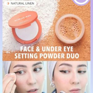 SHEGLAM بودرة تثبيت الوجه والعين السفلية-طقم من الكتان الطبيعي 2 في 1 بودرة تثبيت فاتحة وبودرة مضغوطة للوجه ضد المسام مضادة للماء والمكياج الأسود الشتوي بمناسبة – Size: one-size