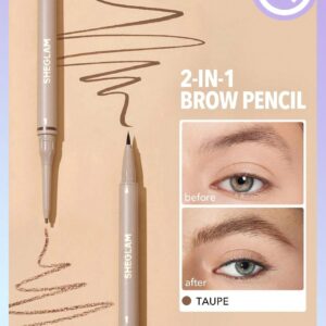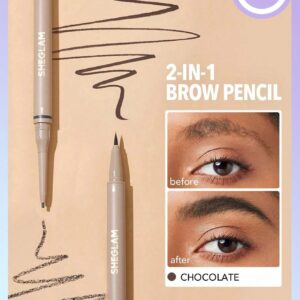SHEGLAM قلم حواجب 2 في1 باللون الشوكولاتة، مناسب للماء ويقاوم التعرق والزيوت الطبيعية ويملأ الفراغات في الحواجب ويحددها، كريم جل مكياج حواجب لا يتأثر بالعرق والزيوت الطبيعية – Size: one-size